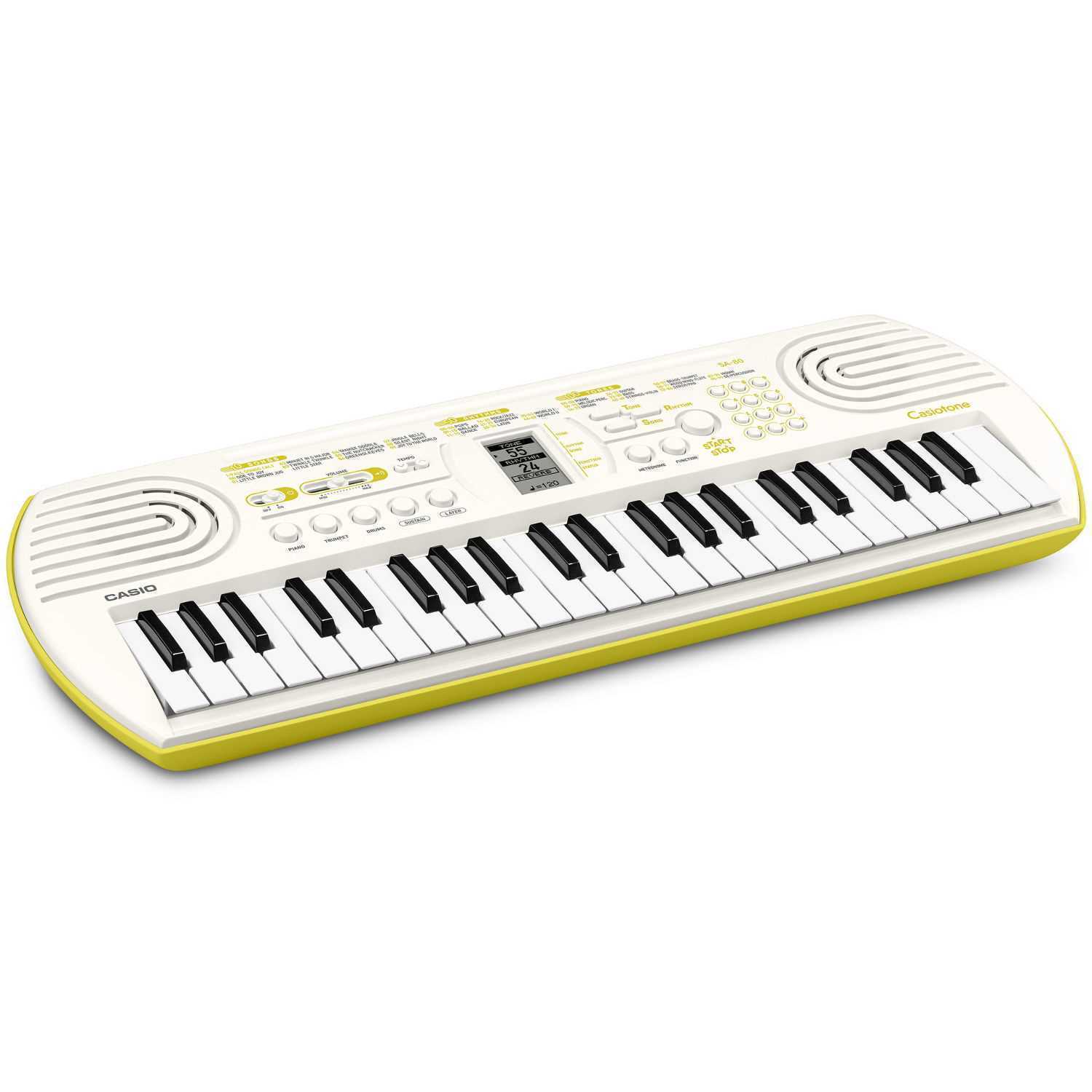Detta keyboard har 44 något mindre tangenter, vilket gör det perfekt för yngre talanger i åldern 3-5 år. SA80 erbjuder 100 olika instrumentljud, 50 rytmer och 10 inbyggda sånger, samt 5 trumpads för extra kreativitet. Med funktioner som layer, reverb och sustain kan man utforska och skapa sitt eget ljud. Den uppdaterade skärmen gör navigeringen enklare och tydligare. Observera att batterier och nätadapter säljs separat.